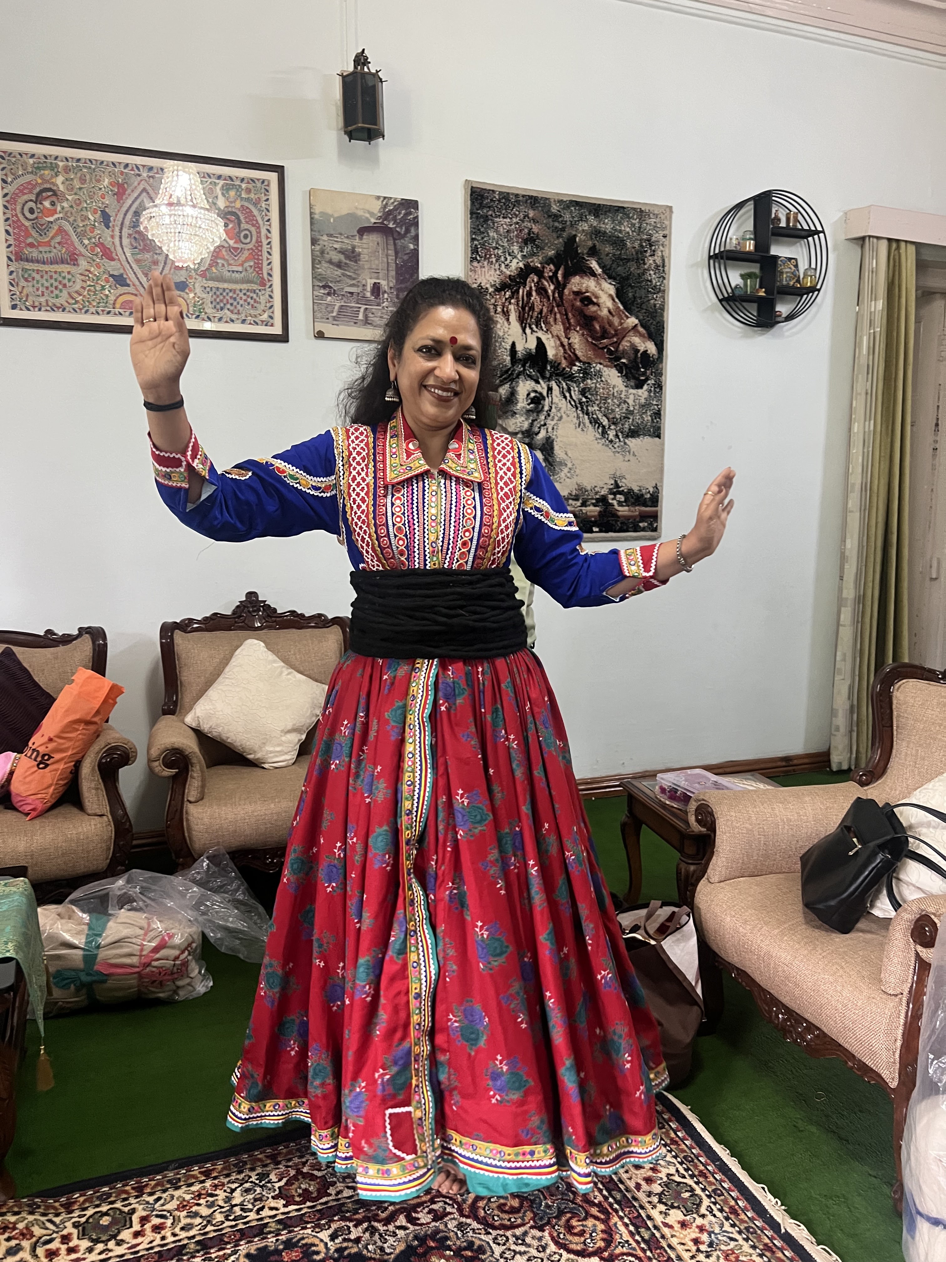 Rajasthan connect is very much evident in their dress – hand printed colorful